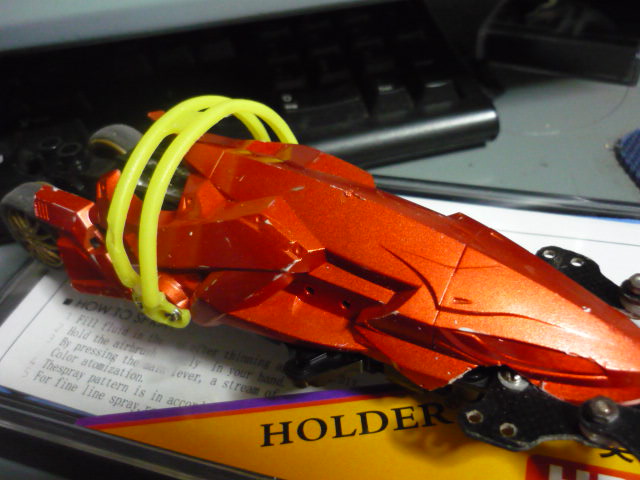 タミヤのシルバー+クリアレッドで吹いてみた感じはこんなん。